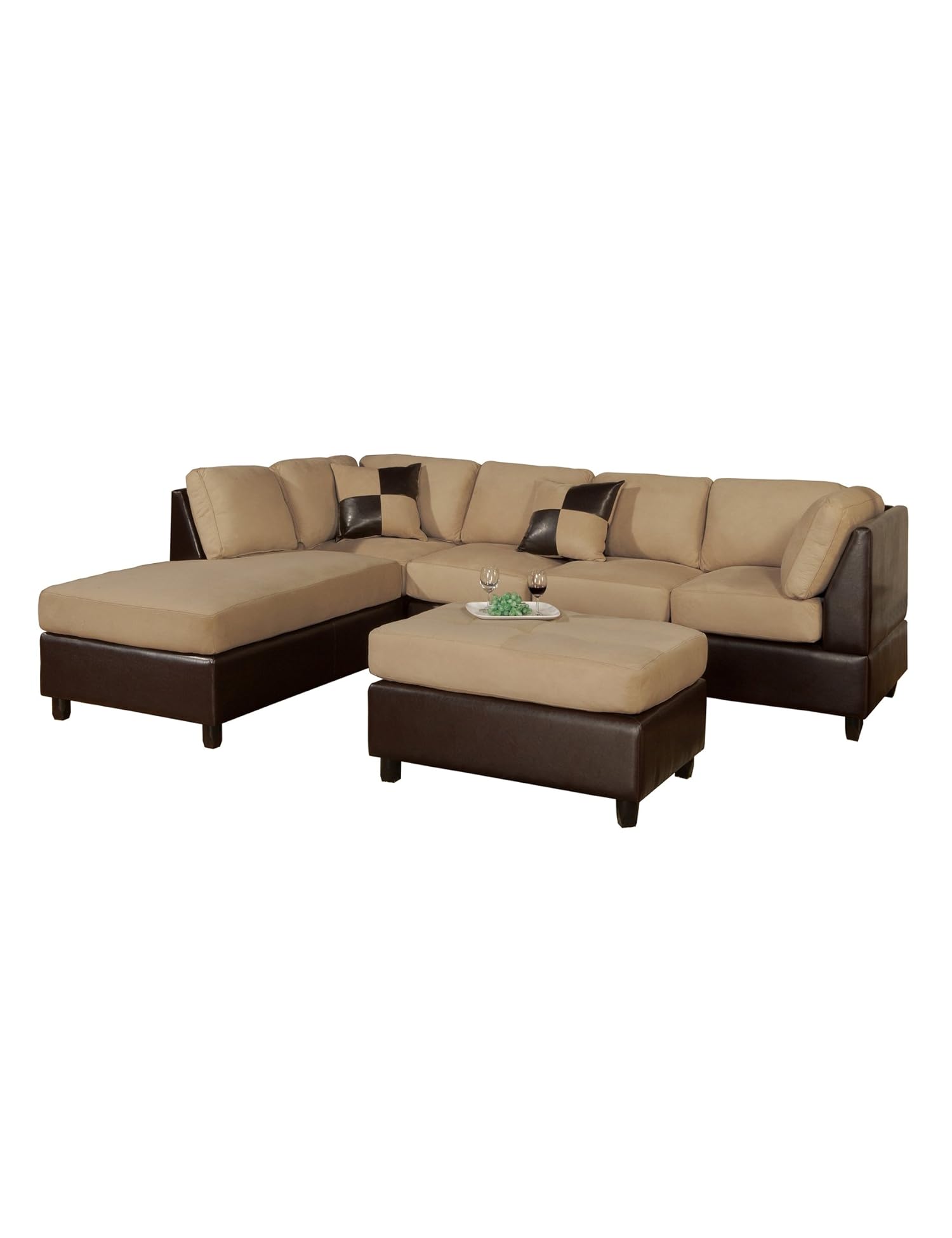 Bobkona Hungtinton Microfiber/Faux Leather 3-Piece Sectional Sofa Set, Hazelnut