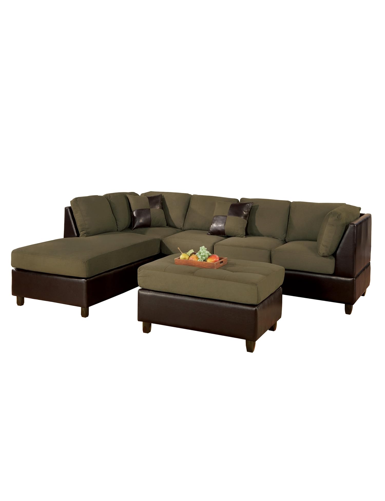 Bobkona Hungtinton Microfiber/Faux Leather 3-Piece Sectional Sofa Set, Sage