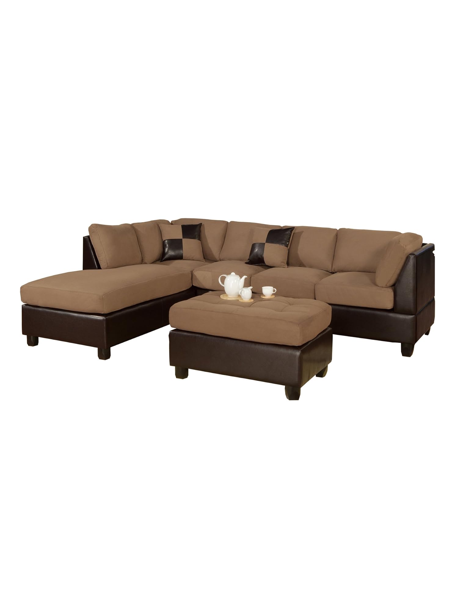 Bobkona Hungtinton Microfiber/Faux Leather 3-Piece Sectional Sofa Set, Saddle